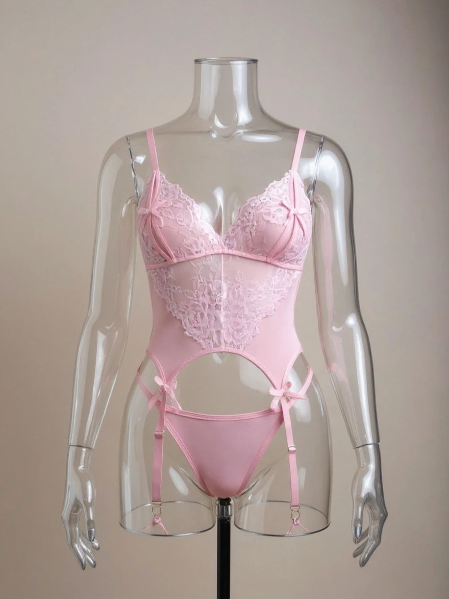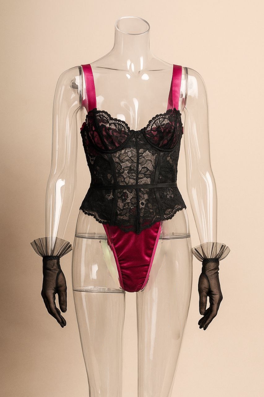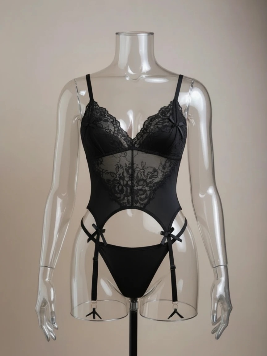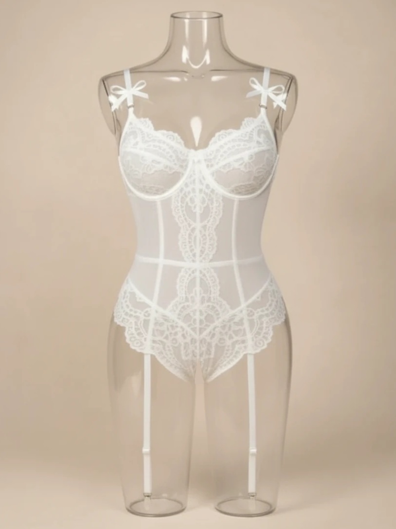 مدل کورست: بند سرشانه رگلاژدار، کاپ سینه شیاردار، با بند جوراب متصل