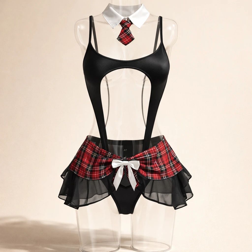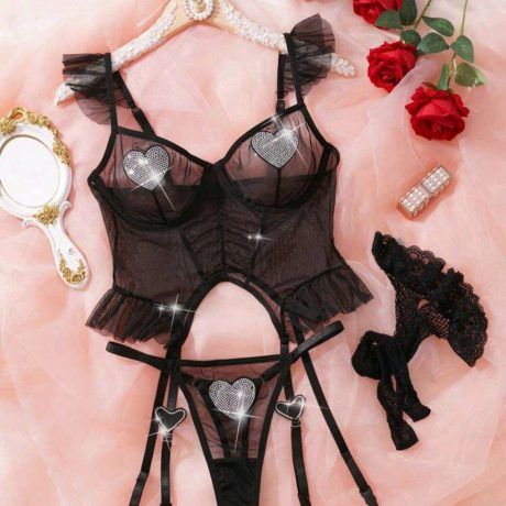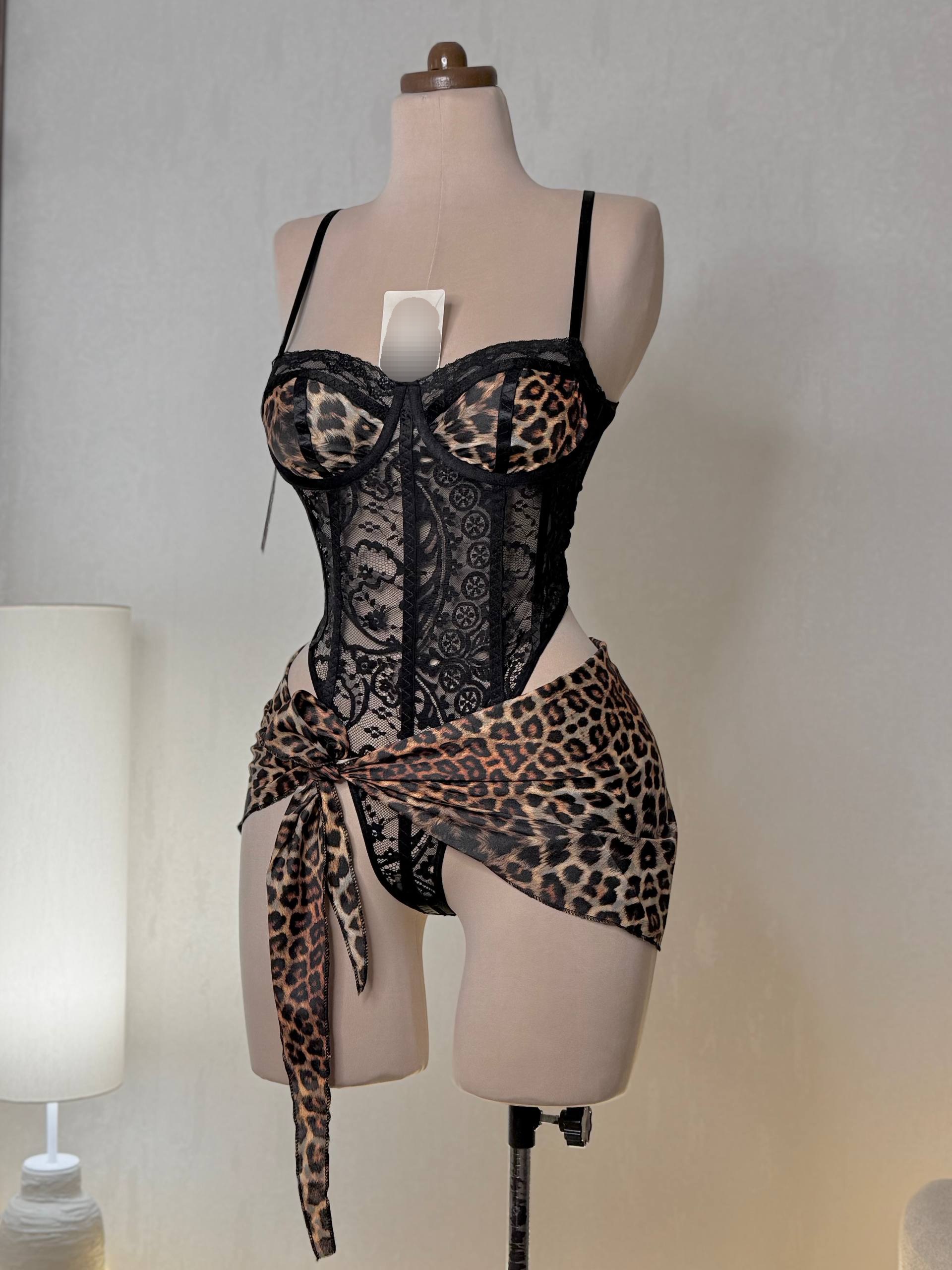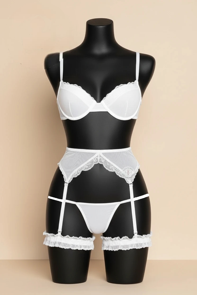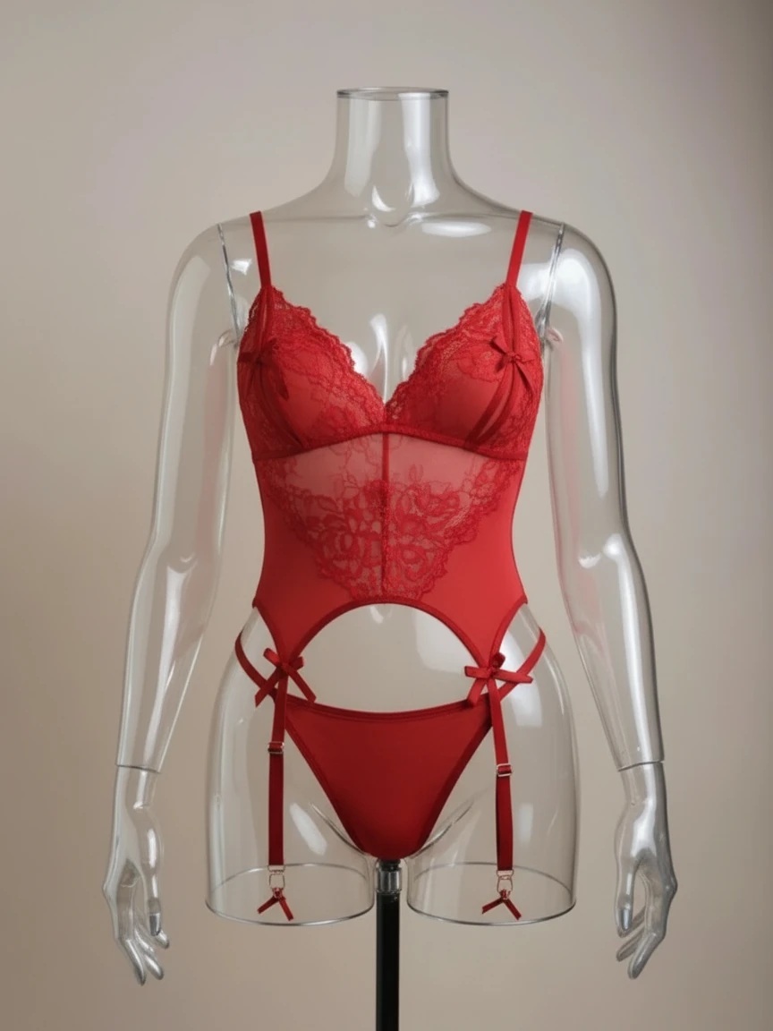 مدل کورست: بند سرشانه رگلاژدار، کاپ سینه شیاردار، با بند جوراب متصل