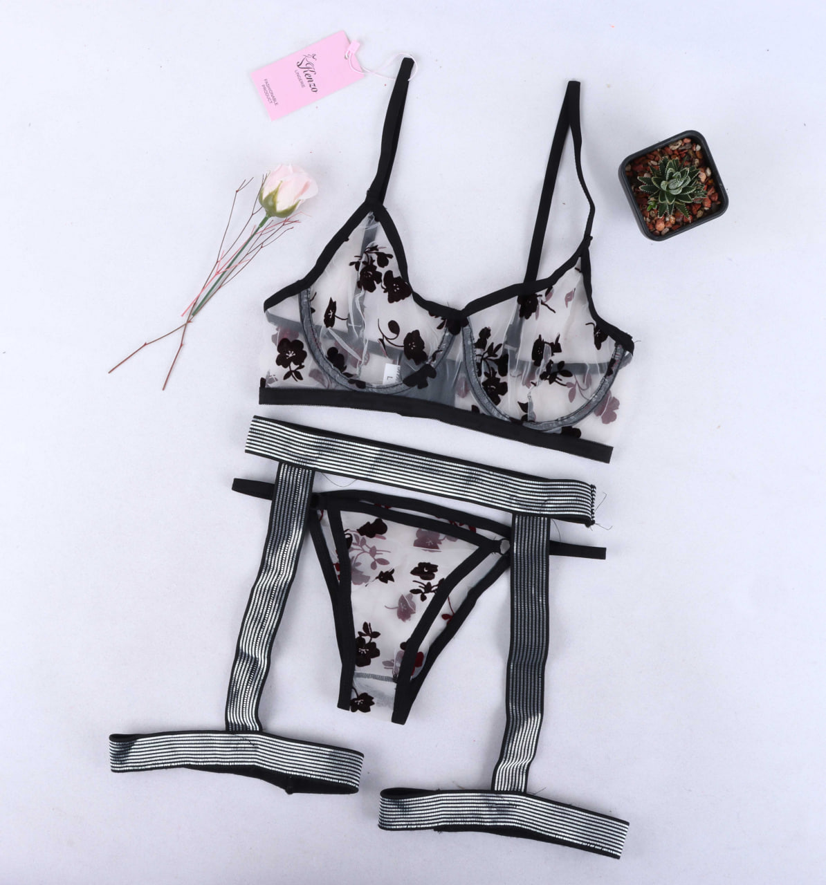این ست لباس زیر فانتزی بسیار زیبا ۳ تکه با کد 1610 شامل سوتین فنردار، شورت فانتزی، بند جوراب مدل تسمه دور ران، از جنس تورگاز گلدار مخملی و کش بند جوراب بافت نقره کوب مناسب سایزبندی (۸۰-۸۵)L(۷۰-۷۵) ,XL میباشد. برای دیدن عکس تنخوراینجا کلیلک کنید. بند جوراب عکس تنخور و خود کار متفاوت است.