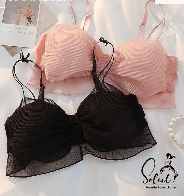 مدل سوتین: کاپدار، پشت قزن، بند سرشانه قابل تنظیم قد، جنس پارچه حریر پلیسه ای