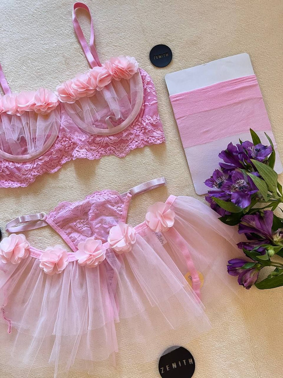 شکوفه های کار شده در سوتین و بند جوراب