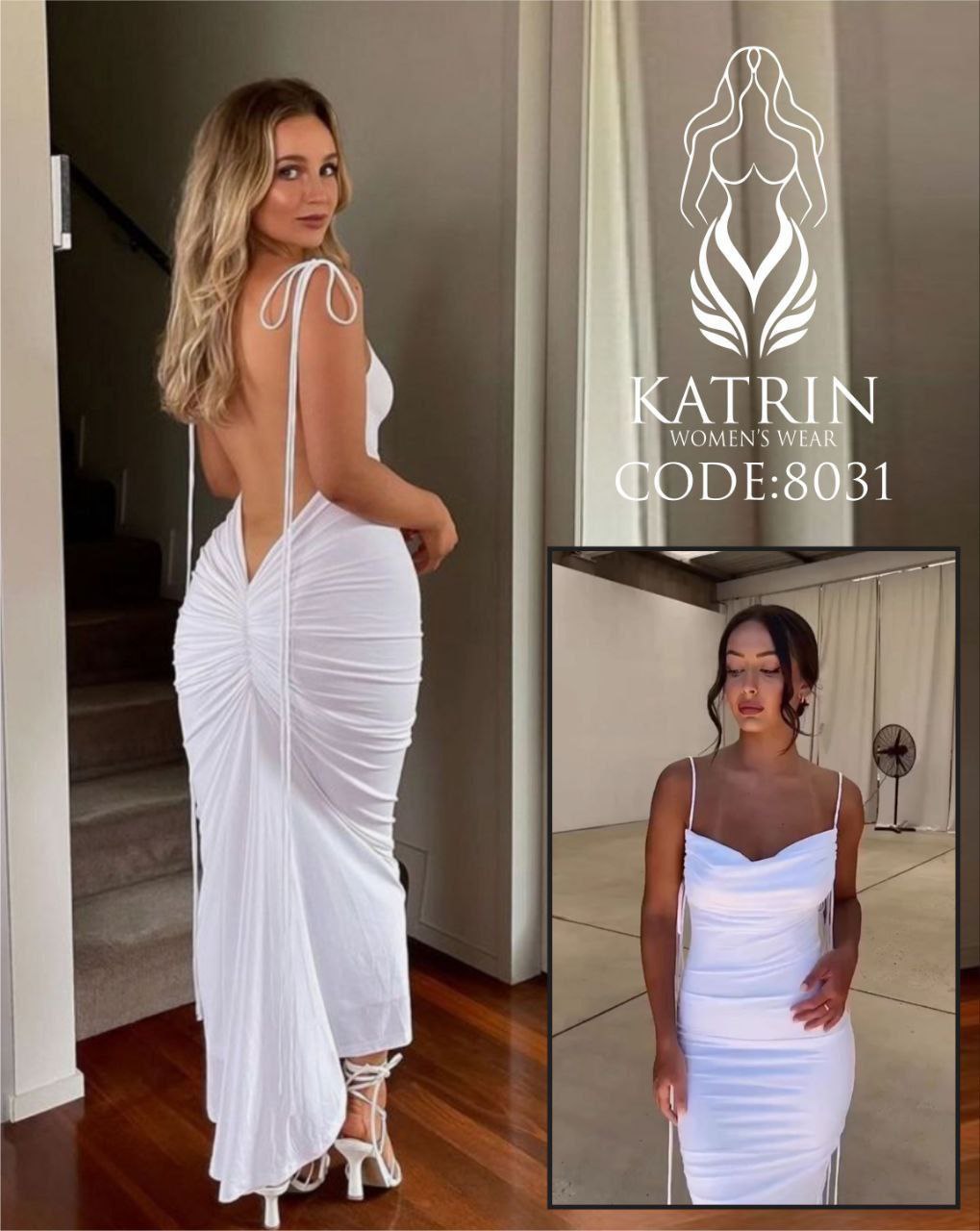 پیراهن زنانه ماکسی دنباله دار فلامنت پشتچین کد 8031