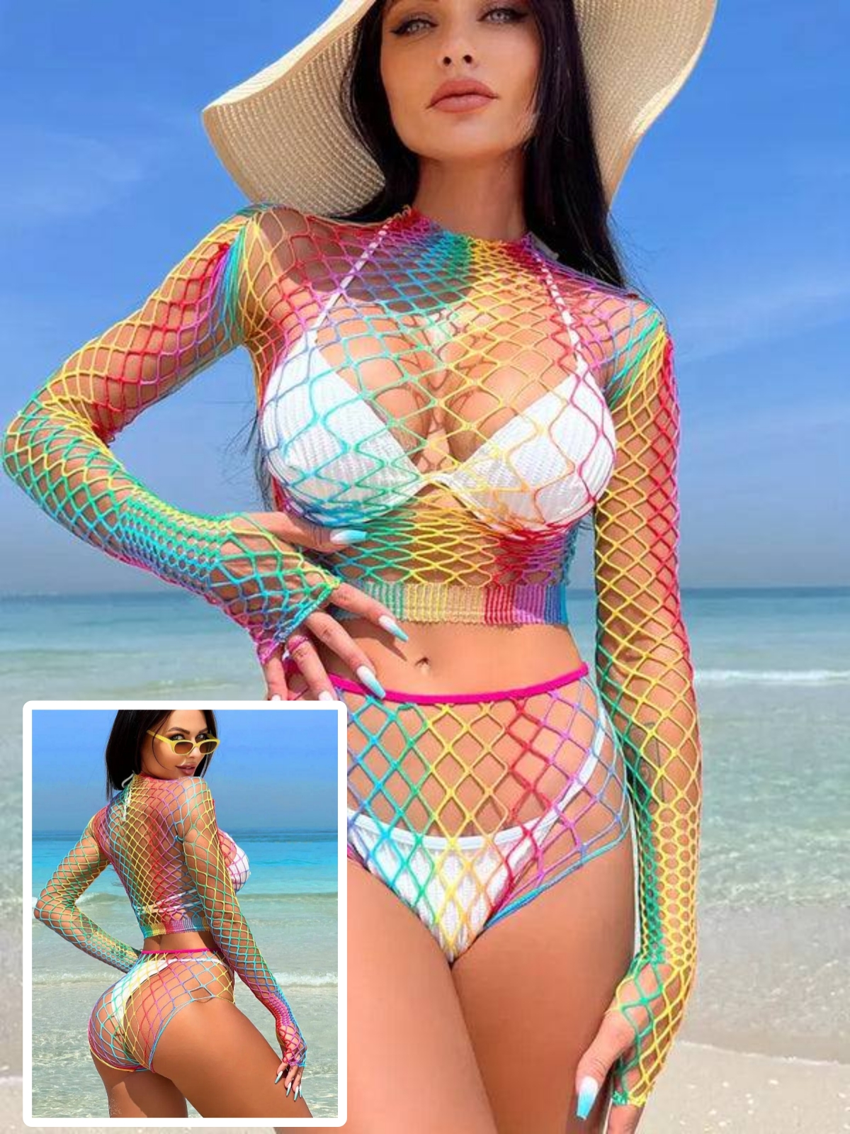 این ست بادی استاکینگ دو تکه نیمتنه و شورت رنگینکمانی جذاب از جنس نخ با بافت جورابی مناسب فری سایز 36 الی 52 با کشسانی بسیار بالا میباشد. تن خور عالی ، کار وارداتی است. برای دیدن عکس تنخور اینجا کلیک کنید