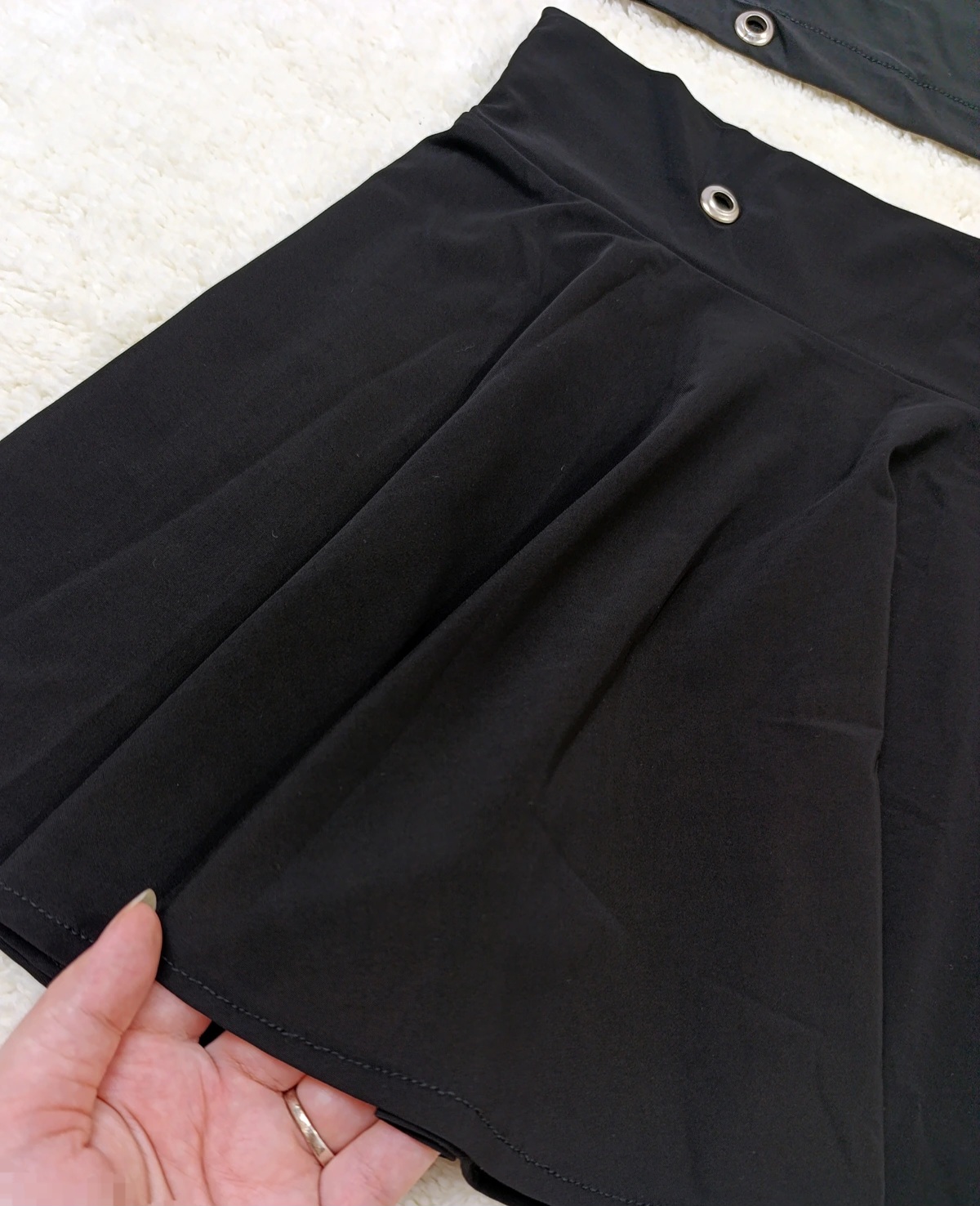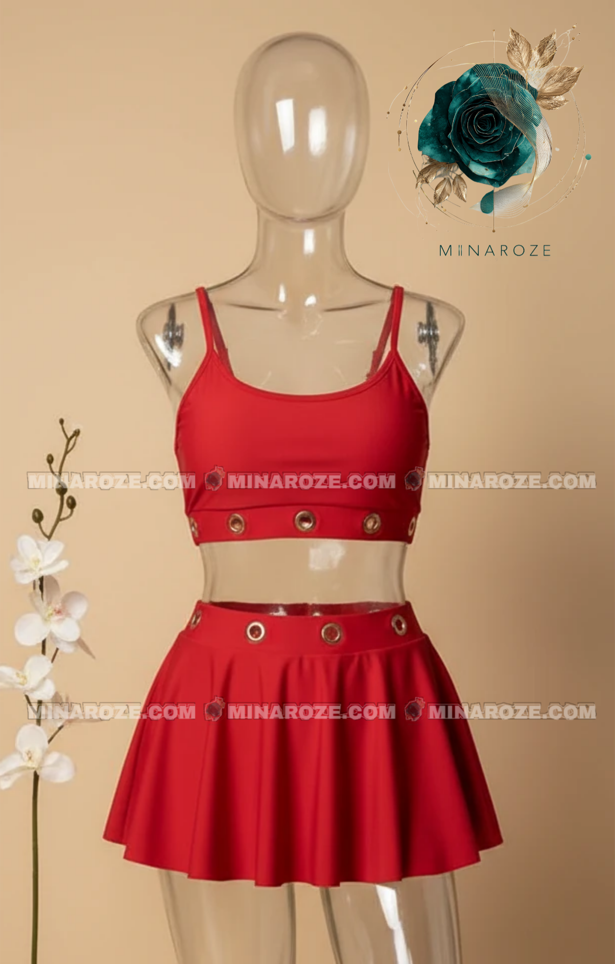 مدل دامن : کوتاه زیر باسن، کلوش، کمر کش، کمر دامن پانچ شده