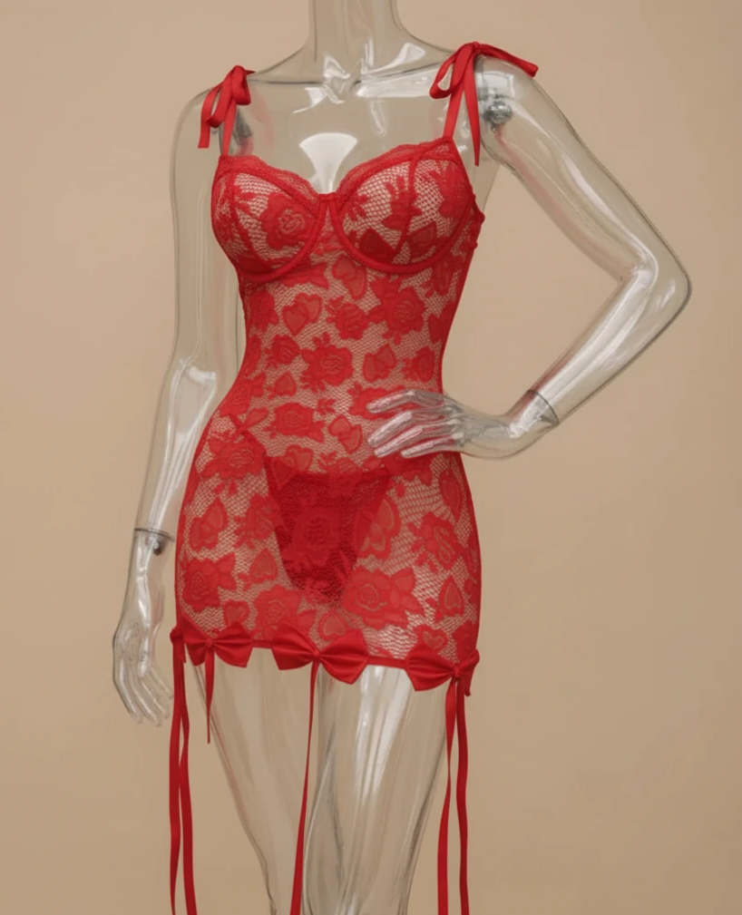 این لباس خواب جذاب انتخابی بینقص برای بانوانی است که به ظرافت و جزئیات اهمیت میدهند. پارچه دانتل تمامکش با طرحهای قلب و گل، جلوهای رمانتیک و چشمگیر دارد. کاپ سوتین فنردار با طراحی فرمدار، علاوه بر زیبایی، راحتی و حمایت مناسب را برای سینهها ایجاد میکند. بندهای گره ای، امکان تطبیق کامل با فرم بدن را فراهم میآورند و روبانهای تزیینی در قسمت پایین لباس، حس لطیف و زنانه را دوچندان میکنند. برای دیدن عکس تنخور اینجا کلیک کنید