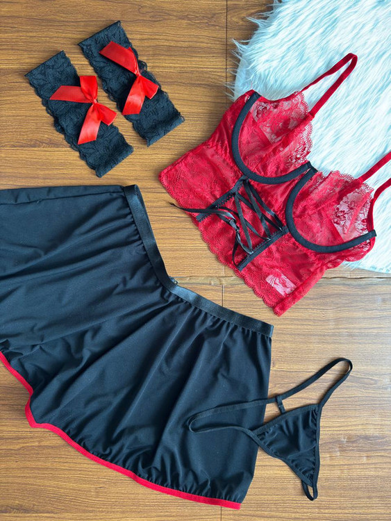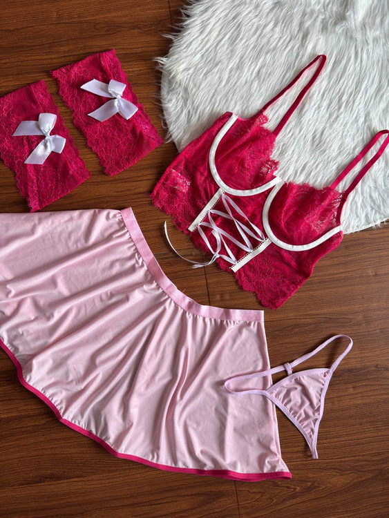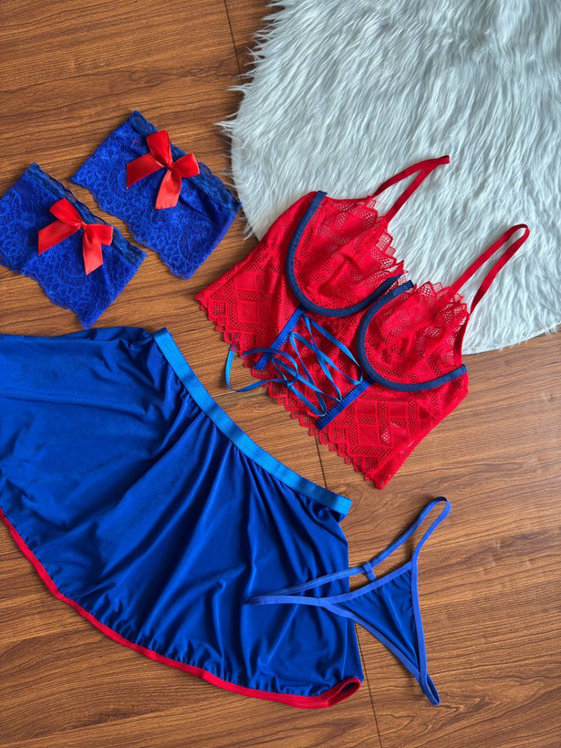 این ست لباس زیر فانتزی ۳ تکه با رنگ آمیزی خاص خود میتواند یک استایل جذاب برای شما بسازد. رنگ های شاد و هیجان انگیز، این ست را مناسب هدیه کرده است، همچنین مناسب قرارهای خصوصی و عاشقانه شماست. برای دیدن عکس تنخور اینجا کلیک کنید