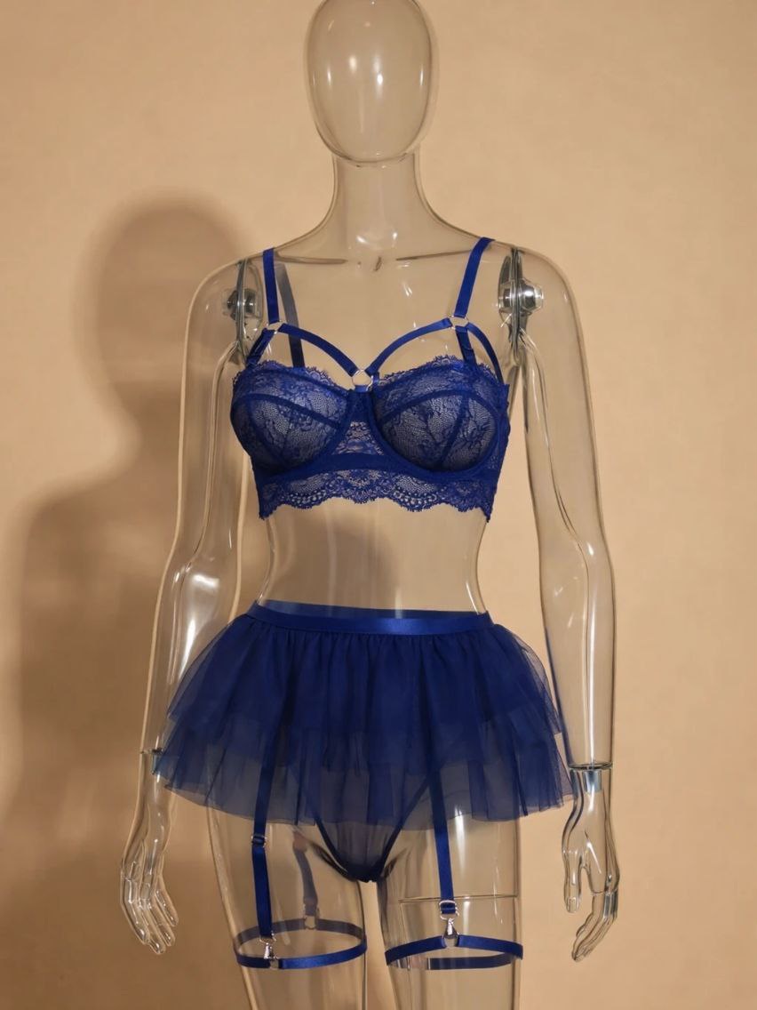 ست لباس زیر فانتزی زنانه فنردار هارنس دار از جنس تور و دانتل کد M351