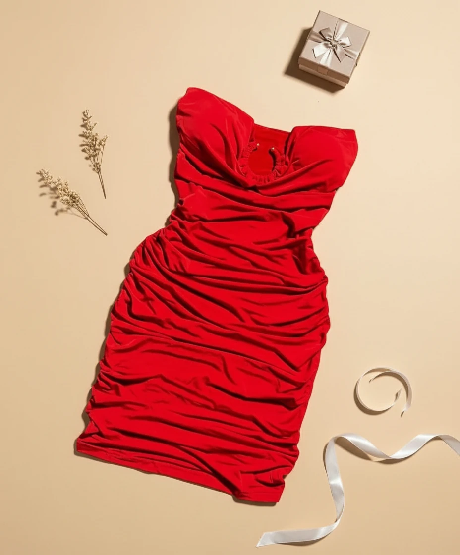 پیراهن زنانه فانتزی مدل دکلته بقل چین کاپ دار کد M066
