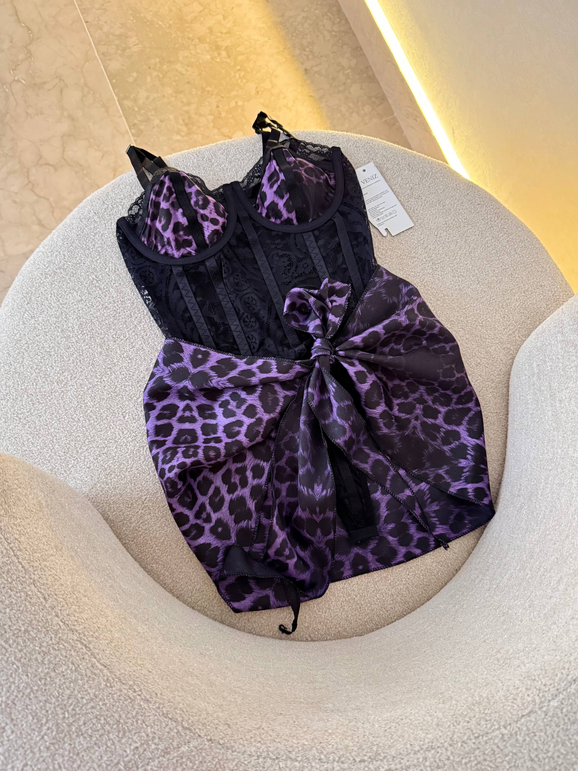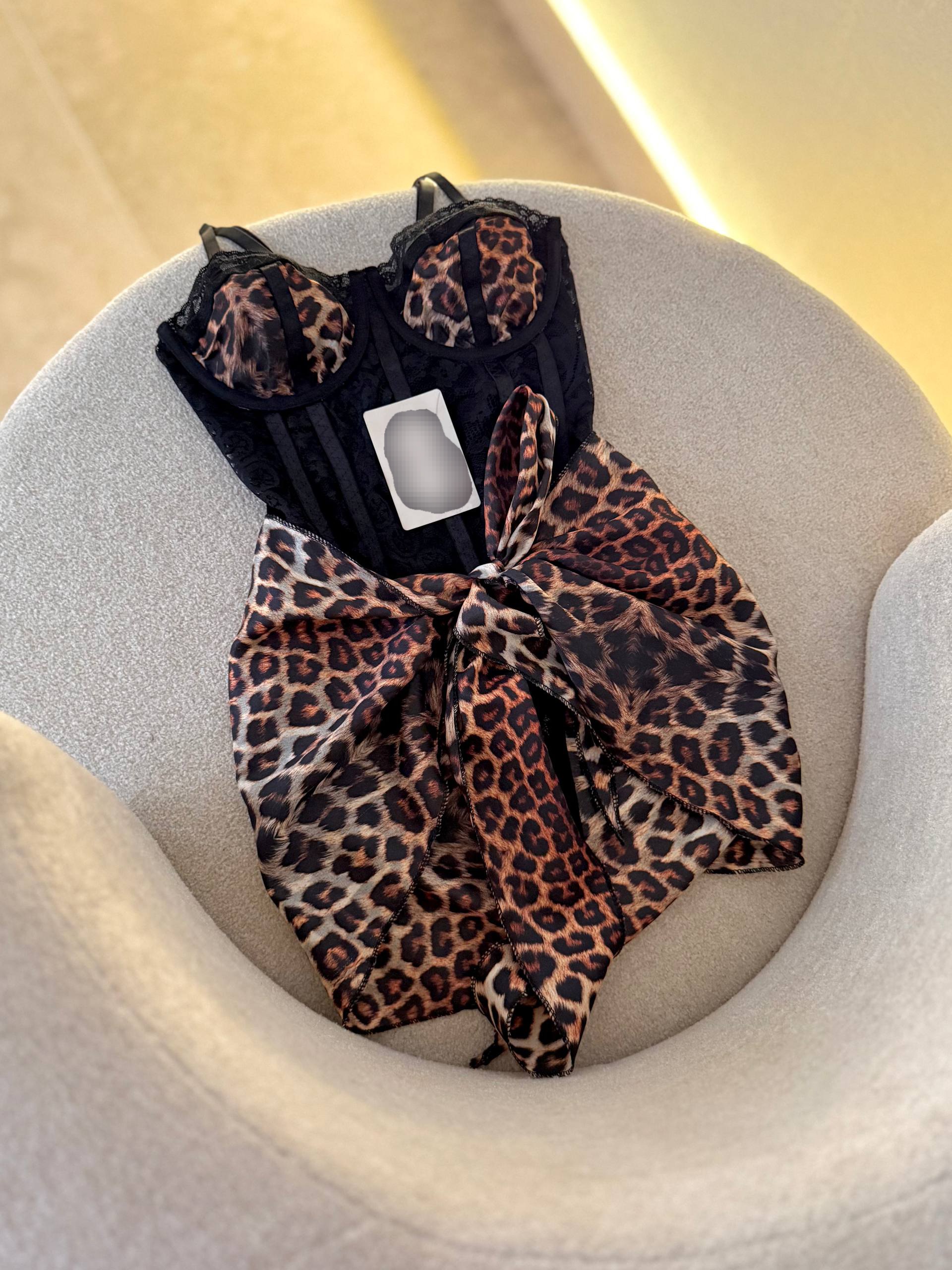 مدل بادی: کاپ سینه پلنگی رنگی، فنردار، بند سرشانه رگلاژدار، فاق بکلس قزندار