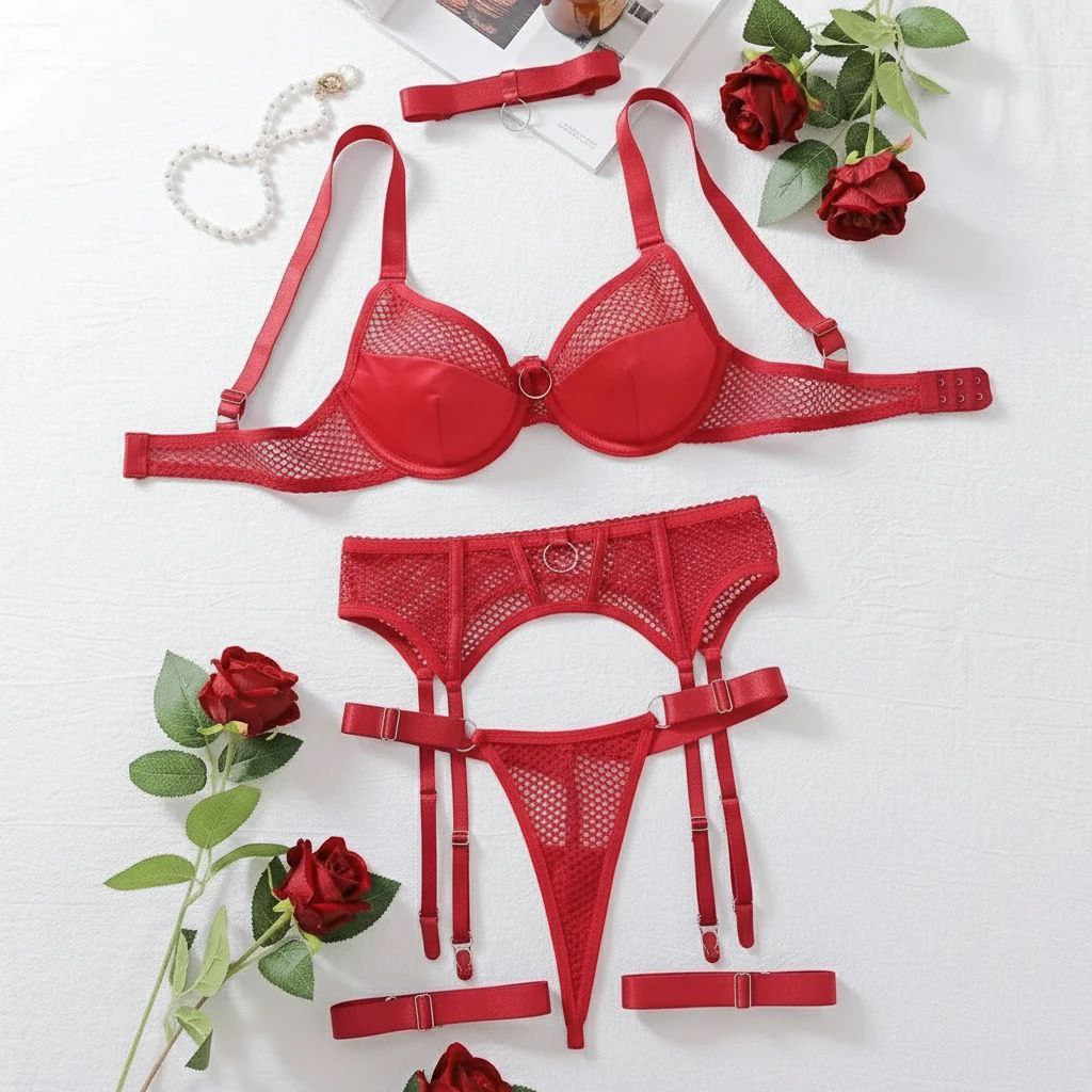 ست کامل: سوتین، شورت، بند جوراب، بند دور پا، چوکر